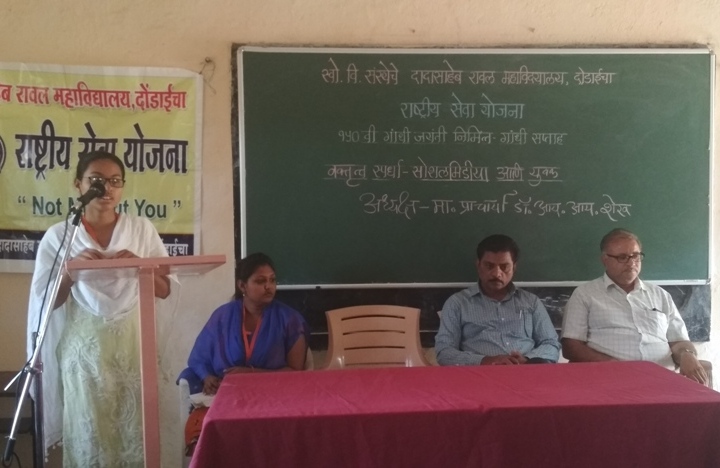 गांधी साप्ताह निमित्त वकृत्व स्पर्धा – सोशल मिडीया आणि युवक दि. २९ सप्टेबर २०१८