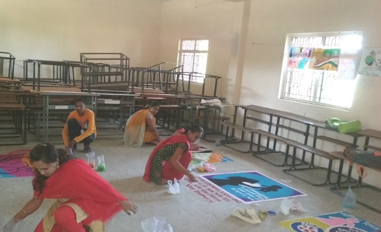 राष्ट्रीय सेवा योजना व युवती सभा यांच्या संयुक्त विद्यमाने गांधी साप्ताह निमित्त रांगोळी स्पर्धा व पोस्टर स्पर्धा दि. ०१ ऑक्टोबर २०१८
